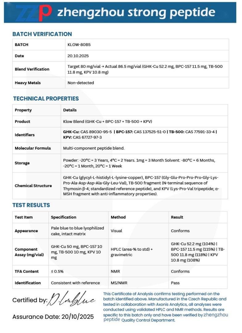 At ZhengzhouStrongPeptide.com, every product — including KLOW — is lab-verified for purity and consistency.